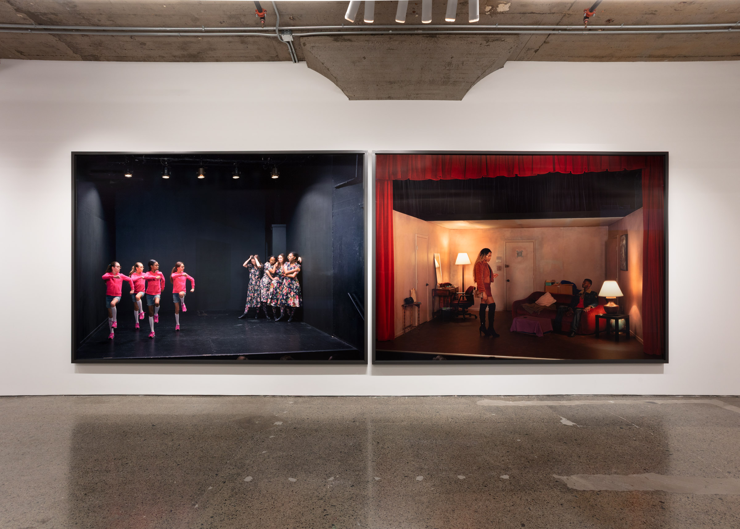 Jeff Wall, Summer Afternoons, 2013. Two lightjet prints, Fallen rider, 2022. Inkjet print. Courtesy Gagosian. Jeff Wall Photographs 1984–2023, installation view, MOCA Toronto, 2025. Photo: LF Documentation. © Jeff Wall.