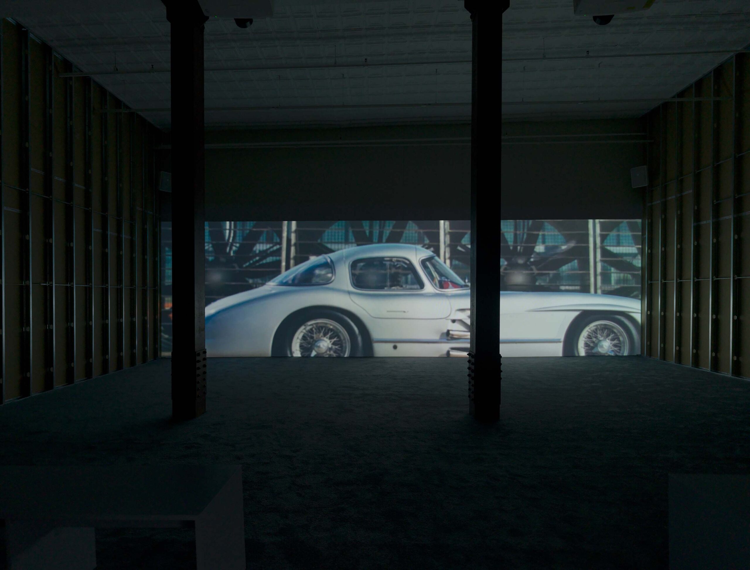 The Canadian premiere of Baby Blue Benzo (2024)—her most ambitious work to date—anchors the exhibition. It begins with the Mercedes-Benz 300 SLR, the most expensive car ever sold at auction, and expands into a research film about the arbitrariness of value and its production. The film also links “Benz” to benzodiazepines—medications commonly prescribed for anxiety and insomnia. Original, stock, and AI-generated imagery scrolls forward and backward, mirroring the relentless feed of daily life. Visible seams and awkward glitches hint at the burden of images and their false promises. Playing within a former auto factory, MOCA’s current home, the film draws pointed connections between photography and its role in manufacturing illusion and advancing capitalism.