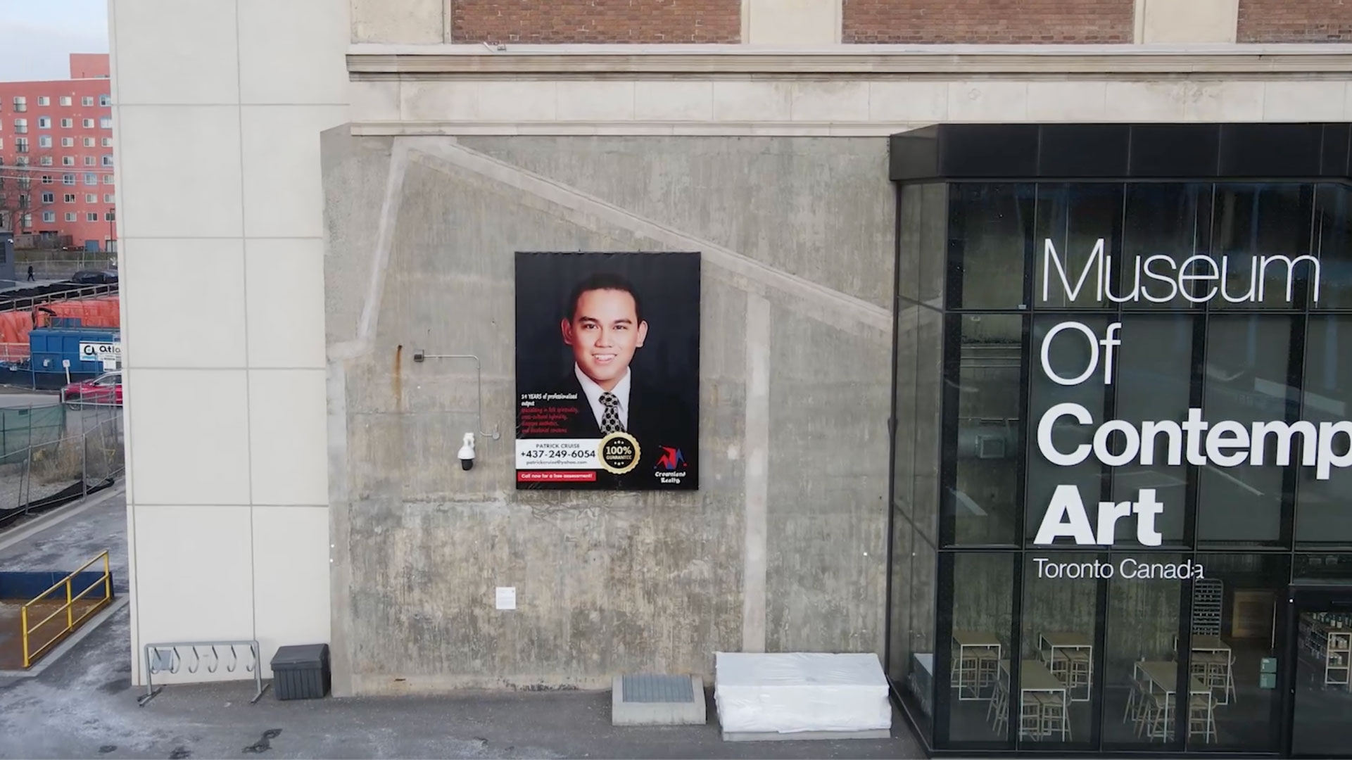 Cruz interprets MOCA’s exterior Lightbox as a billboard, the work’s site-specificity suggesting that artists and arts institutions cannot escape context, physical or otherwise. In this way, Crown land asks: What does it mean for the art world in Toronto to be so entwined with real estate, especially when the notion of land ownership is so complex? And what impact does this entangled relationship — especially in relation to funding — have on artistic practice and production?